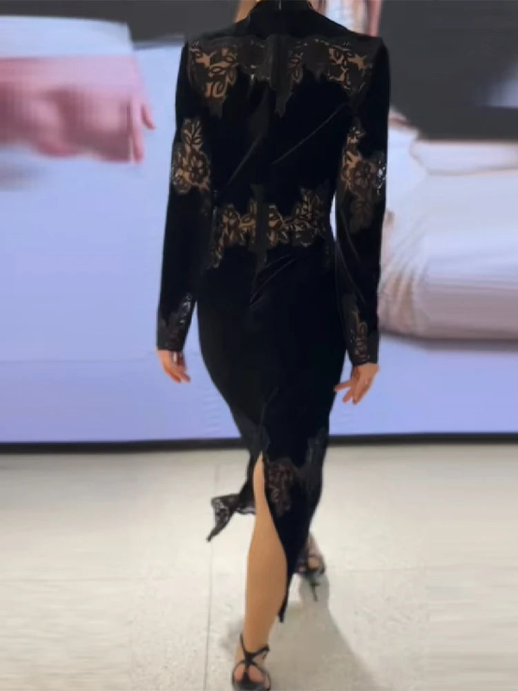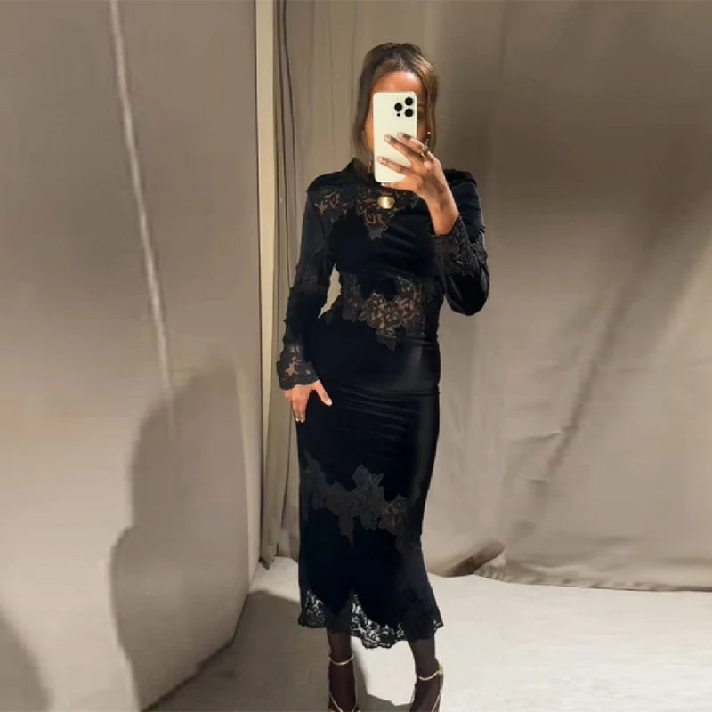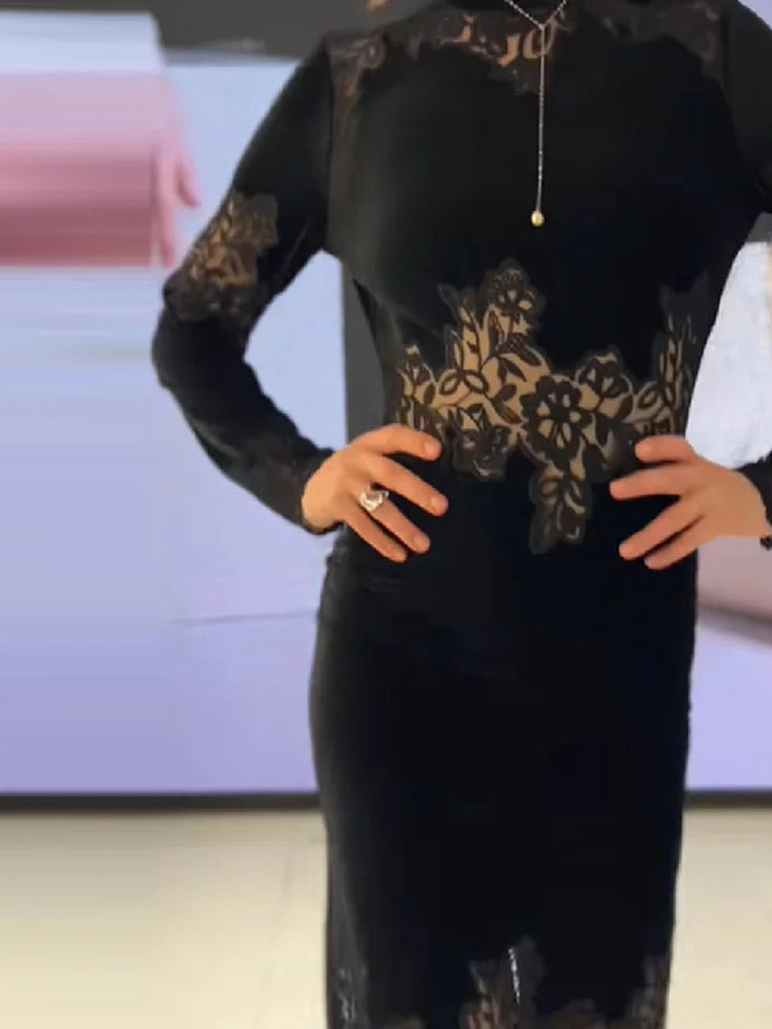 The dress features a sophisticated see-through lace design, adding a touch of elegance and femininity to your wardrobe.